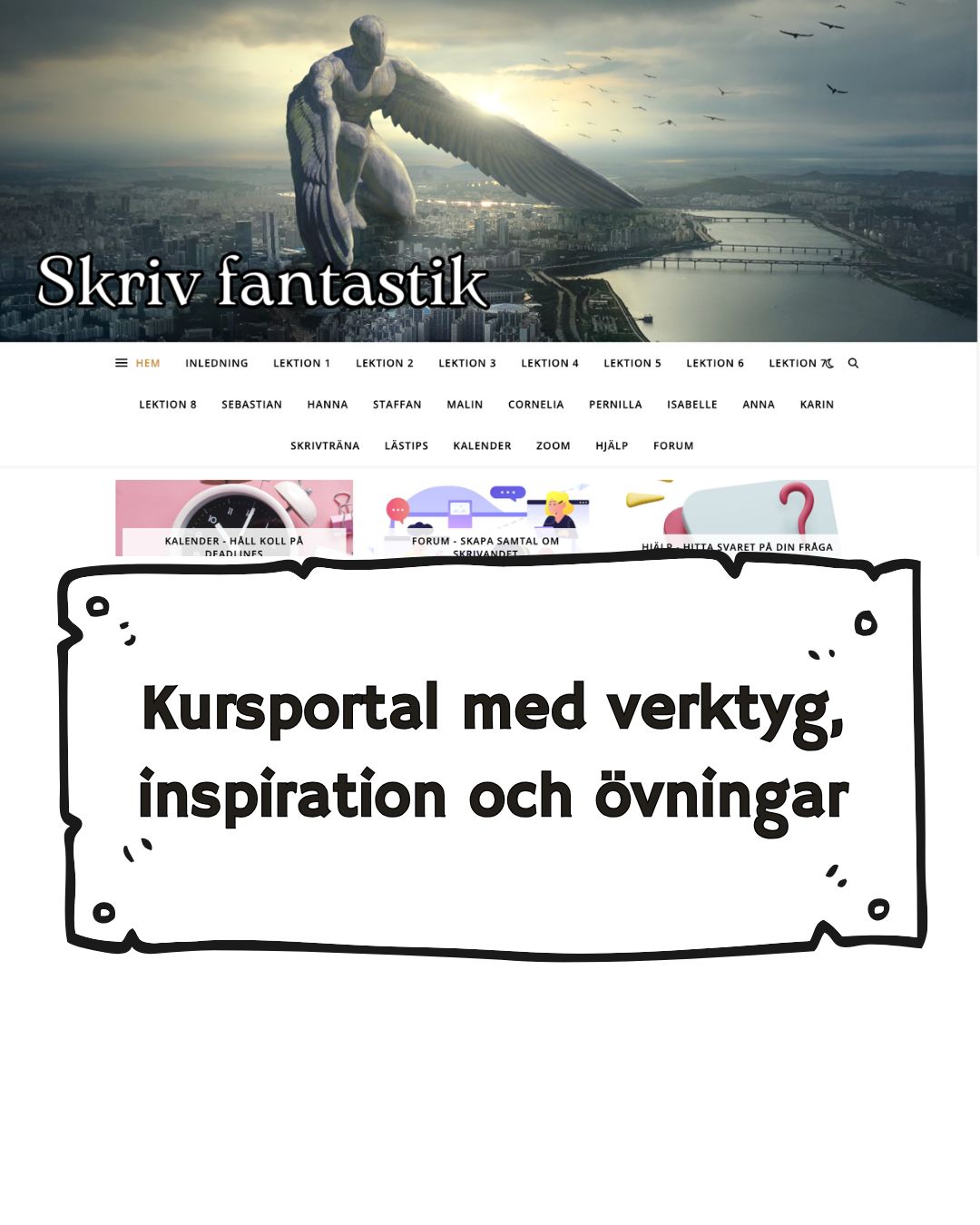 Vi går igenom verktyg som tar dig genom hela skapelseprocessen: från idé till publicerad roman. I kursen ingår Hjältens resa som kompass och modell för en berättelse - den kan användas till alla typer av historier men lämpar sig lite extra bra för fantastik. Dessutom får du lära dig att använda arketyper för att vända och vrida på karaktärer som får liv och nerv. Du lär dig skrivandets hantverk, men får också ta del av inspiration från ikoniska författare inom fantastik. När vi studerar tekniker för fascinerande karaktärer och effektiva kapitel hämtar vi till exempel knep från rollspel. Du får också veta hur du vässar din scenteknik och håller läsaren som klistrad.