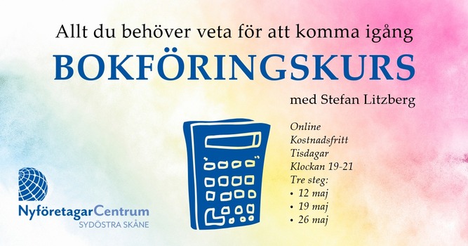 Vill du förstå grunderna i bokföring och känna dig säkrare i ditt företagande? Under tre tillfällen går vår lokala rådgivare Stefan Litzberg igenom bokföringens ABC – steg för steg och på ett lättbegripligt sätt. Kursen hålls online via Zoom.
