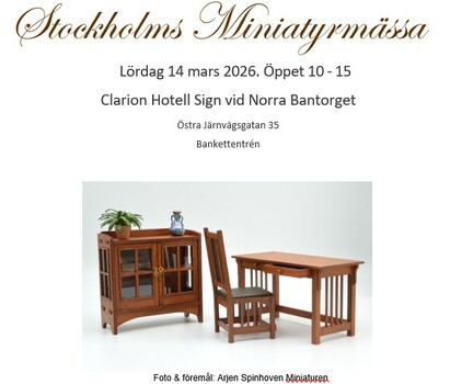 Välkommen till Stockholms Miniatyrmässa den 14 mars 2026. Observera att mässan hålls i nya lokaler på hotell Clarion Sign, vid Norra Bantorget (Östra Järnvägsgatan 35).